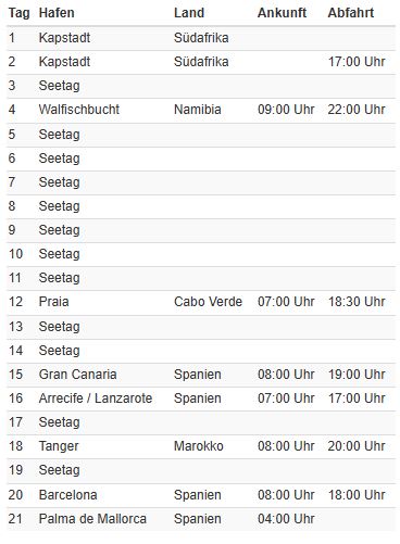 | Termine | Sonderpreis Innenkabine inkl. Flug | |
