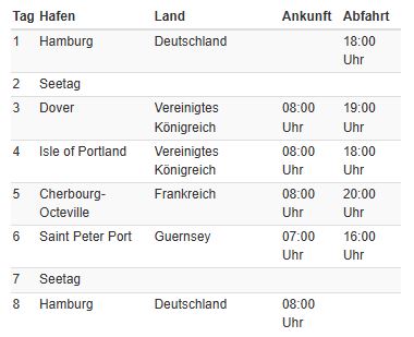 TermineInnenkabine ab/an Hafen Hamburg inkl. Premium