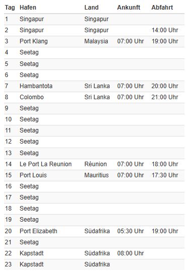 | Termine | Sonderpreis Außenkabine ab/an Hafen | |
