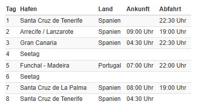 Termine | Sonderpreis Balkonkabine ab/an Hafen | |
