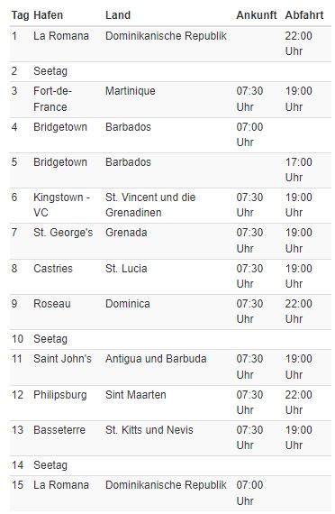 | Termine | Sonderpreis Innenkabine inkl. Flug | |
