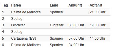 TermineSonderpreis Balkonkabine ab/an Hafen