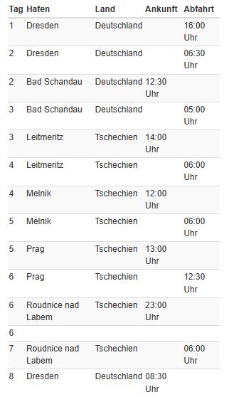 | Termine | Außenkabine ab/an Hafen | |
